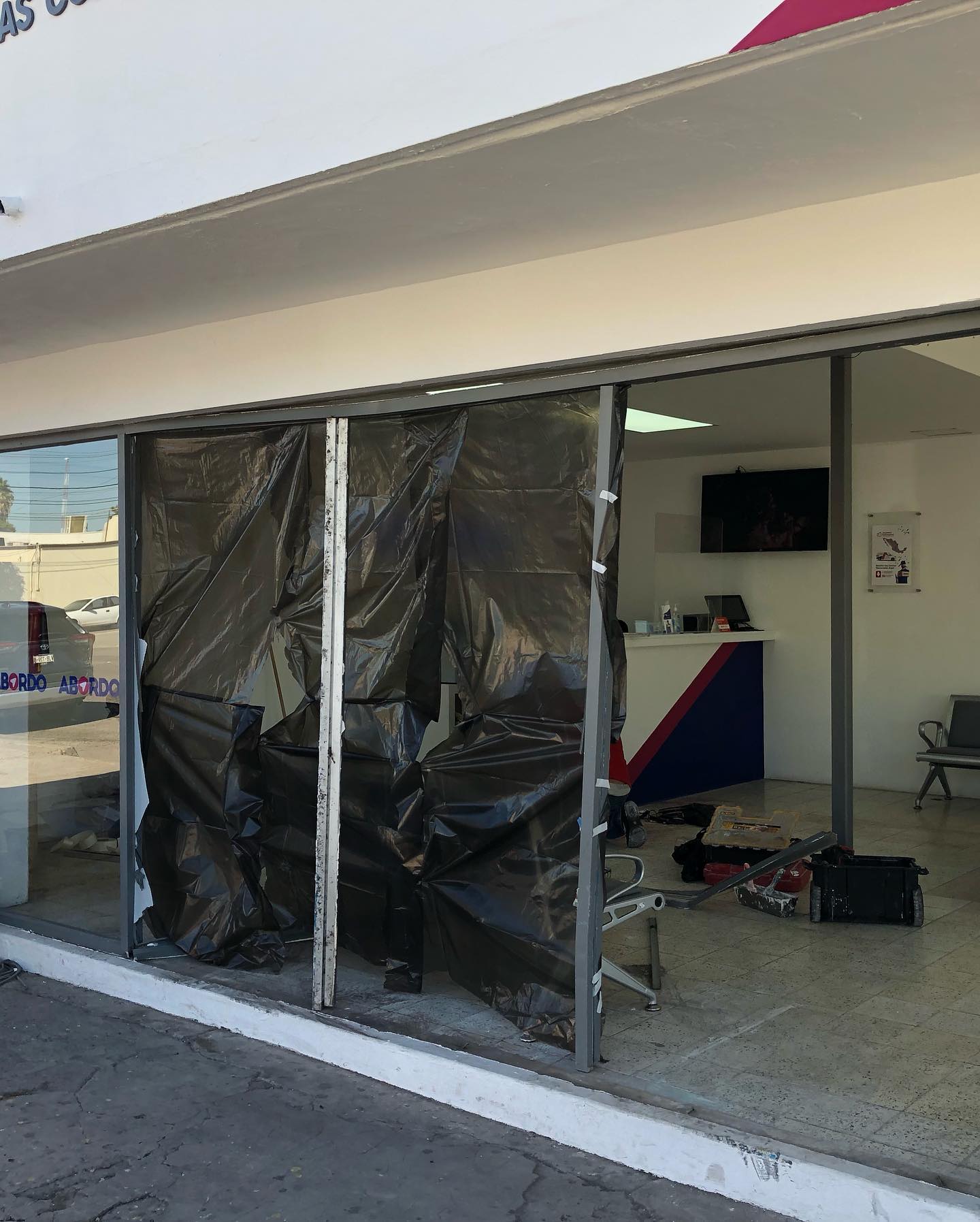 Se remodelo el área de atención al cliente de la terminal ABORDO ubicada por Allende y Morelos en la ciudad de Los Mochis. Realizando los siguientes servicios (Cambio de cristal y aluminio y colocación de puertas corredizas, pintura, mantenimiento a barra de tablaroca, servicios aire acondicionado y conexiones eléctricas).