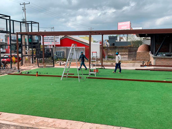 Se diseñó una techumbre de lámina galvanizada calibre 26, con estructura metálica, con montaje y pintura en herrería de color negro, en un periodo de 2 semanas de trabajo desde el diseño, construcción y terminados.