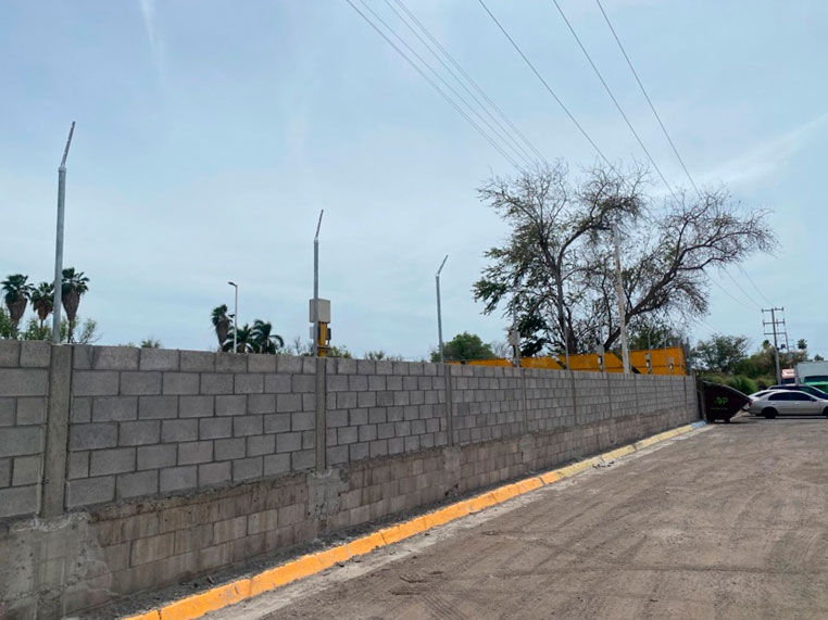 • Suministro e instalación de 91ml de  malla ciclónica de 1.5 m de altura, 29  postes de línea 2″, 2 postes de arranque de 3″, un poste de repuesto de 3″, 185 m de alambre de púas colocado en 3 líneas y 91 ml de alambre de navaja.