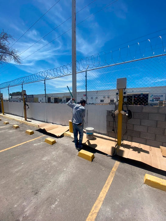 • Suministro y levantamiento 91 ml de muro y de 1.00 m de altura con acabado aparente.